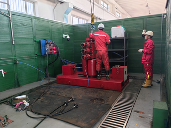 4、 防喷器压力测试装置试压间四周铺设防冲击材料,具备有效的安全防护功能;